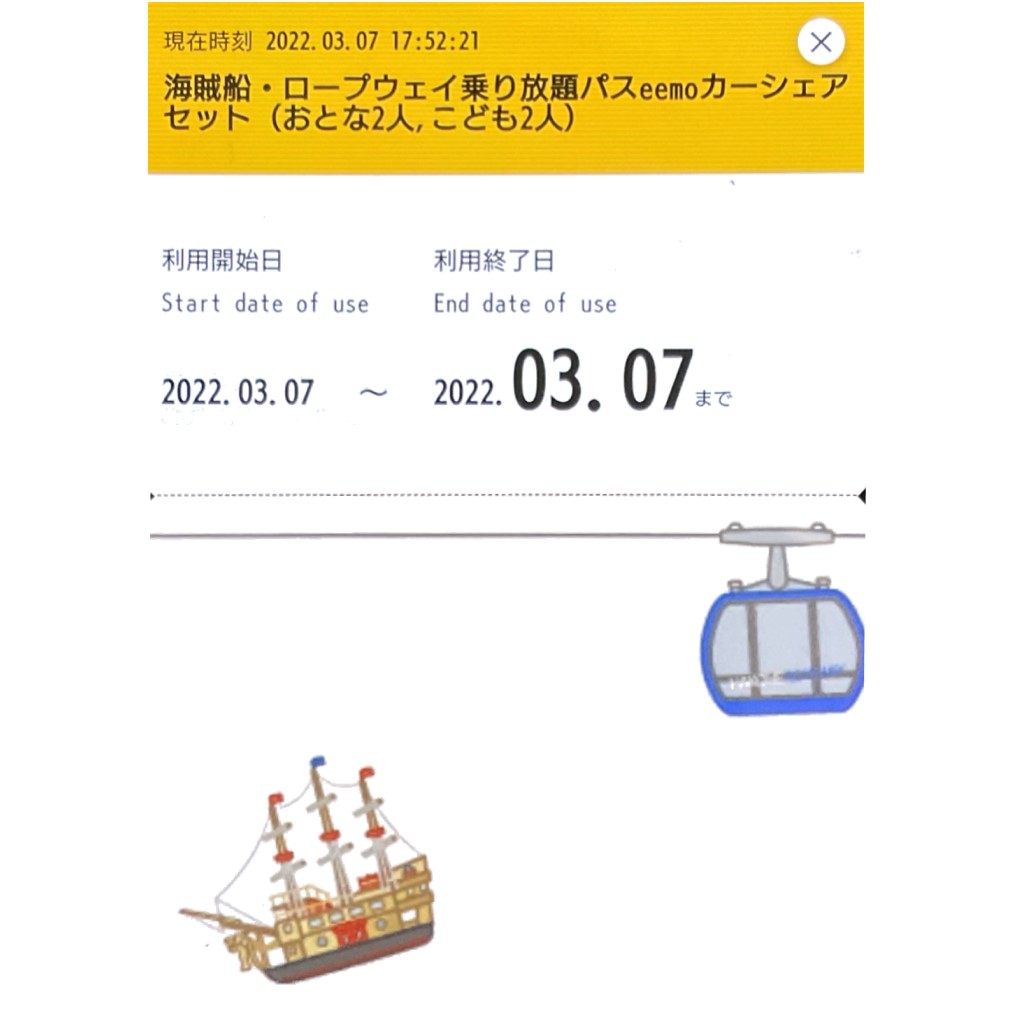 ※デジタル海賊船・ロープウェイ乗り放題パスは1日有効券となります