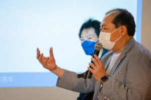 日本フットサル最高峰のFリーグに参戦しているベルマーレを追いかけて日本全国を飛び回るという山川さんと、元ベルマーレの選手である金井さんがベルマーレサポーターの熱さを熱弁しました。山川さんは「スポーツが街の象徴になっているのが羨ましい。ベルマーレフットサルが小田原の象徴になればいいな、という想いがあります」。金井さんは、「小田原とクラブがもっと密接になってほしい。ベルマーレをハブにして、企業のマッチングを行い、社会の問題解決を一緒に目指していきたい」と思いを語りました。