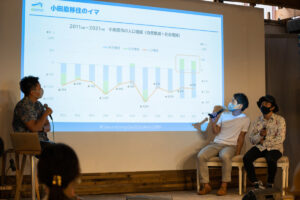 コロナ禍の逆境の中、鮑屋は「出社制限によりデジタル化が進んだ。魚業界はデジタルが進んでいないので、先を行きたい」と語り、スズアコーヒーは「ECサイトを構築し、ZOOMで生豆の仕入を行うようにもなった」と挑戦してきたようです。鈴廣蒲鉾は「小田原・箱根の観光業は自然災害と表裏一体」と言います。新しい挑戦をしつつ、小田原での生き残りを見据えてやっていたい、と3社合わせると創業650年以上の老舗企業のお三方が決意を新たにしていました。