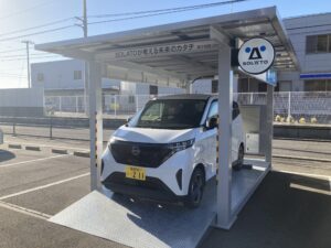 「SOLATOカーシェア」はオフグリット型ソーラーカーポート*1により発電された、太陽光を利用したカーボンフリーな電力でEVを動かすカーシェアリングサービスです。2023年9月1日より愛媛県内にて開始され、今後は同県内における法人・自治体とSOLATOカーシェア実証に順次取り組む予定となっております。