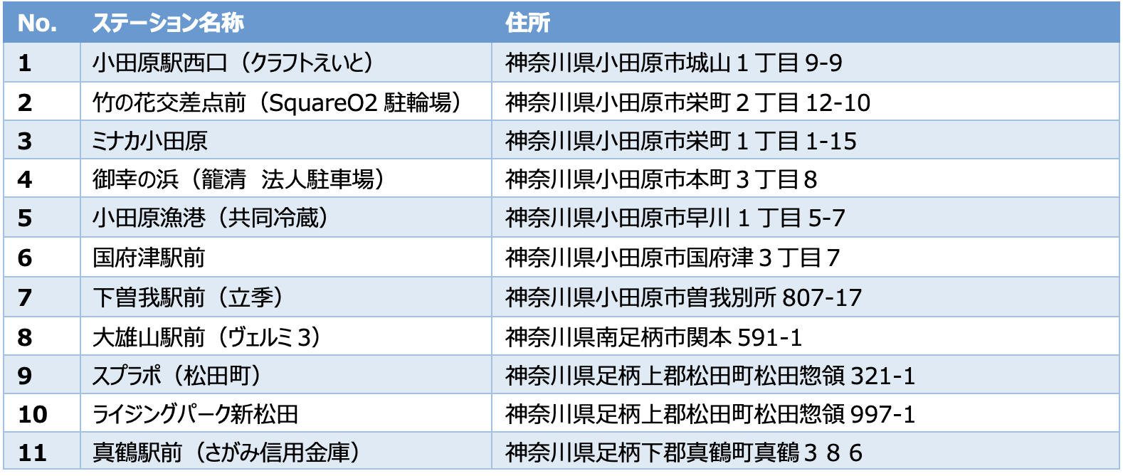 ステーション設置場所の詳細については以下のサイトをご参照ください。