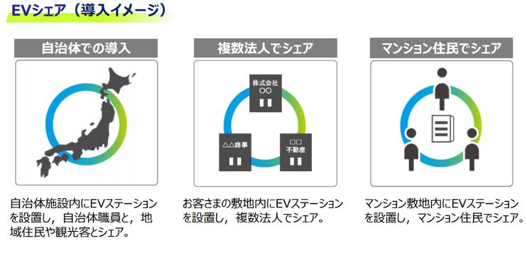 EVのシェアリング機能を活用した複数法人間シェアの推進、導入費用や維持費の負担軽減